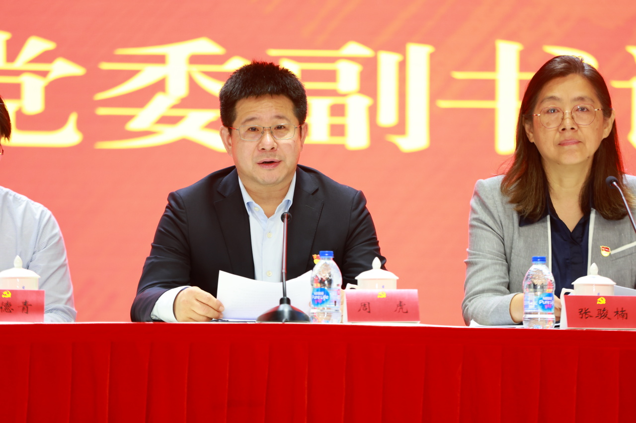 周虎副书记代表学校党委提三点期望:一是以党建引领筑牢发展根基,二是以创新突破服务国家战略,三是以改革赋能培育时代新人。