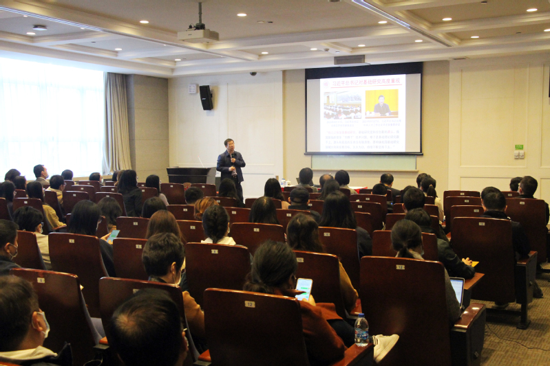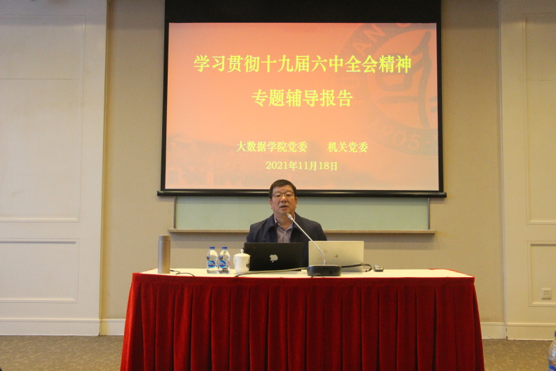 2021年11月18日上午,大数据学院党委、机关党委联合在光华楼东辅楼103会议室,举办学习贯彻十九届六中全会精神专题报告会。邀请中国科学院院士、复旦大学党委常委、统战部部长赵东元同志,作《崇尚科学,探求真理——科研创新之我见》主题报告。会议由大数据学院党委书记、机关党委常务副书记张骏楠主持。