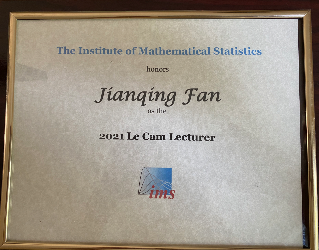 范剑青老师荣获荣获2021年度 Le Cam Award & Lecture