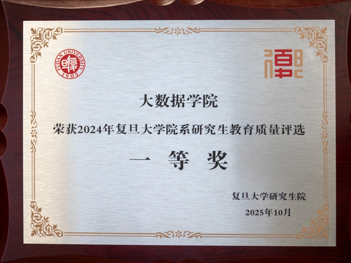 近日,复旦大学研究生院正式公布2024年度院系研究生教育质量评估结果,大数据学院凭借卓越的研究生培养质量与创新成效,荣获一等奖,这一荣誉是对学院在创新型人才培养模式上持续探索与实践的高度肯定。