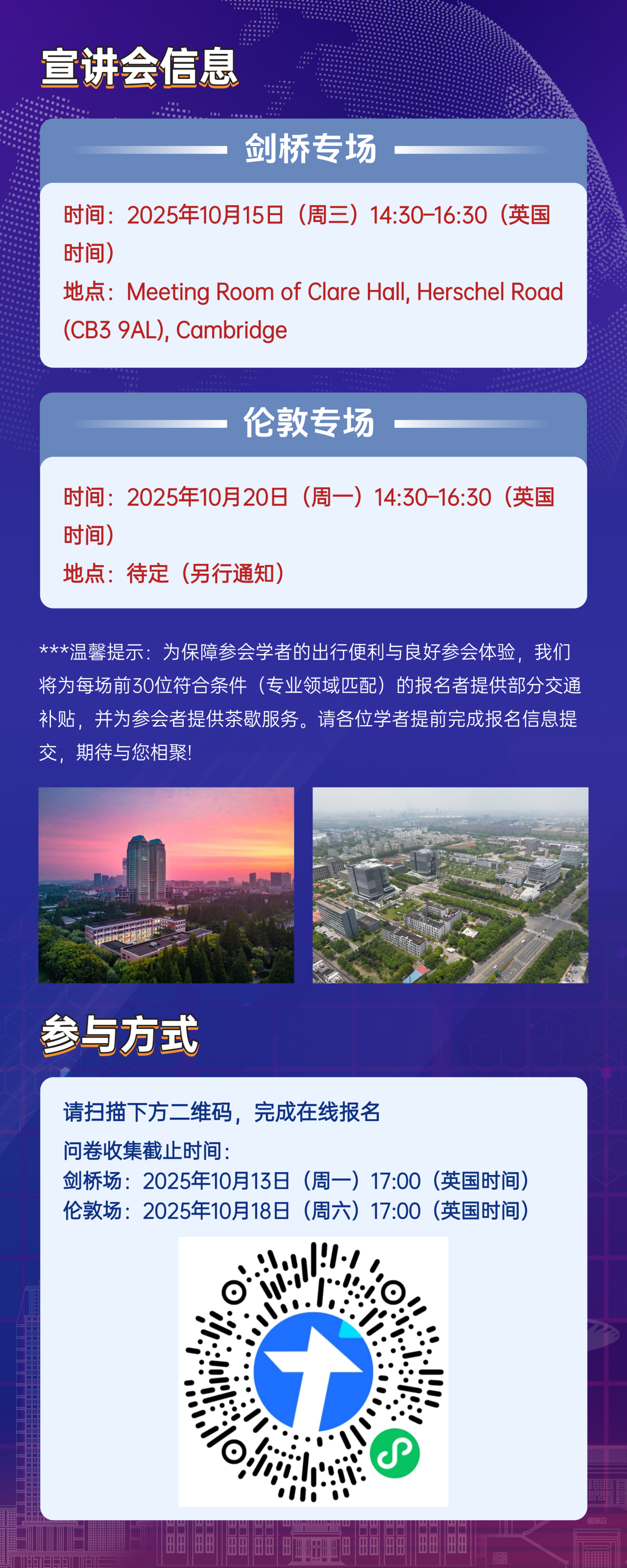 欢迎有意向回国发展的学者踊跃参加,与宣讲团队线下面对面交流,深入了解科研合作与职业发展机会。